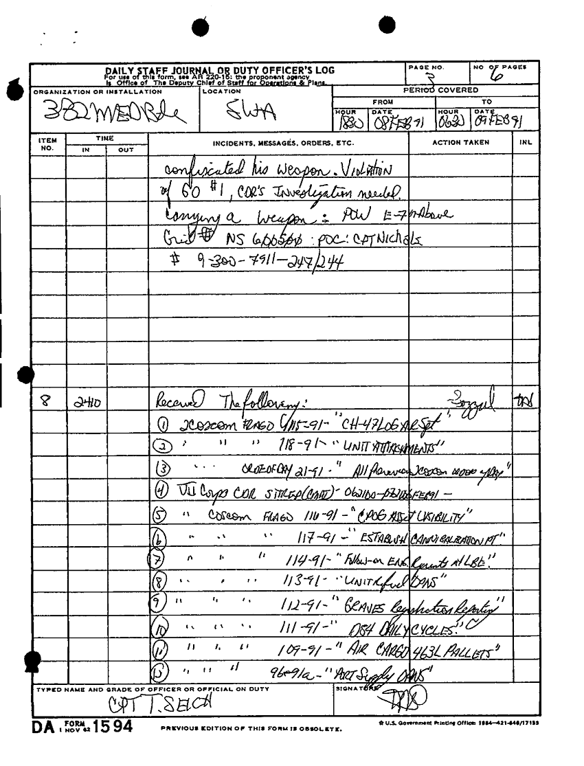 Document 9 f:/Week-34/BX005159/DA FORM 1594-DAILY STAFF JOURNAL OR DUTY OFFICERS LOG -1 FEB-21 FEB 91/daily staff journal or duty officer log:09139616141766