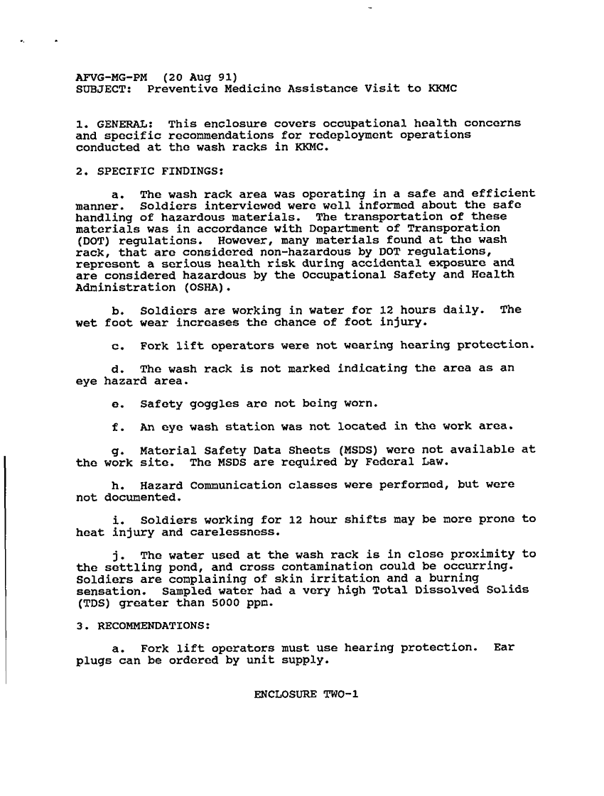 Document 5 f:/Week-34/BX005154/PREVENTIVE MEDICINE-ENVIRONMENTAL THREAT-USAEHA/preventive medicine assistance visit to kkmc 20:09139616143272