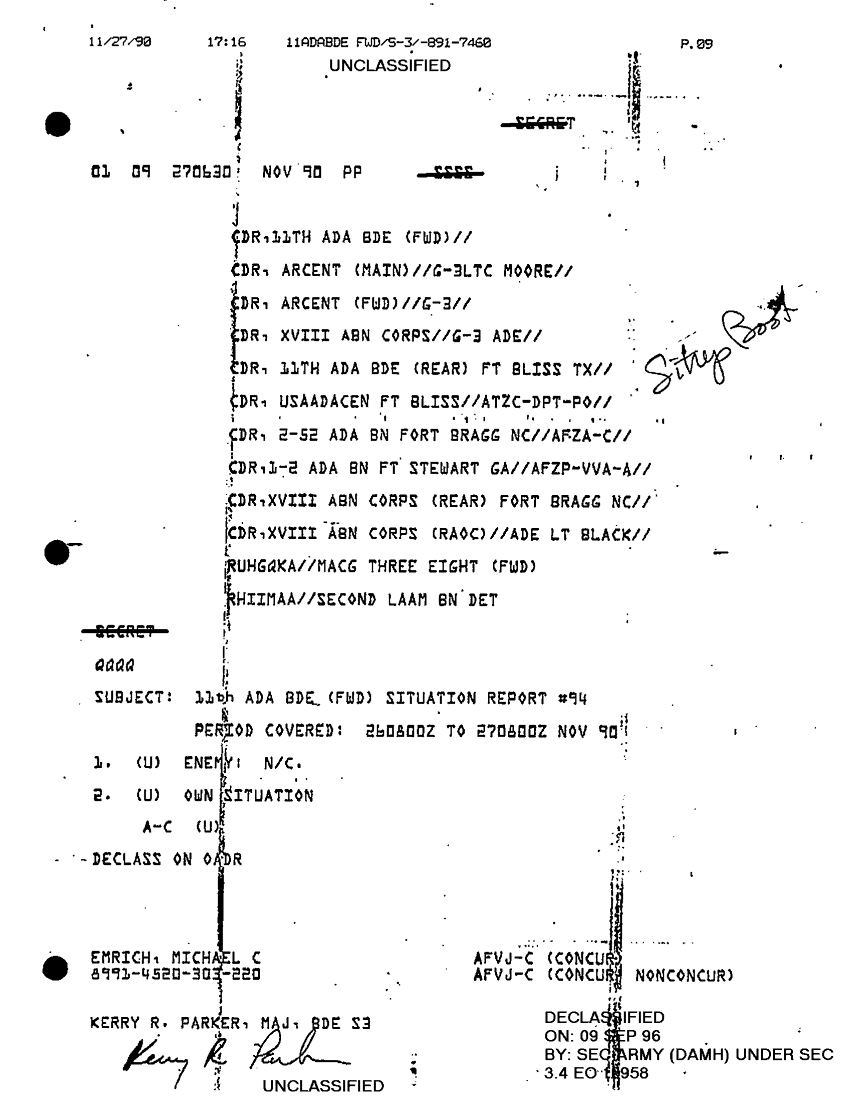 Document 8 f:/Week-32/BX000499/COMMAND REPORTS SITREPS 11TH ADA BDE 7 NOV - 7 DEC 90/11th ada bde situation report no 94 26 to 27 n:09139616144377