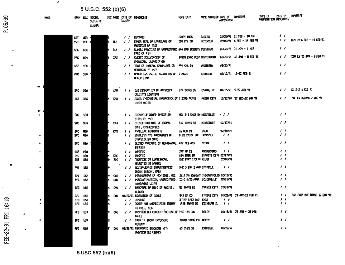 Document 38 f:/Week-31/BX000460/MEDSTAT-SITREPS - FEBRUARY - 2/ods patient status report 22feb91:09139616121511
