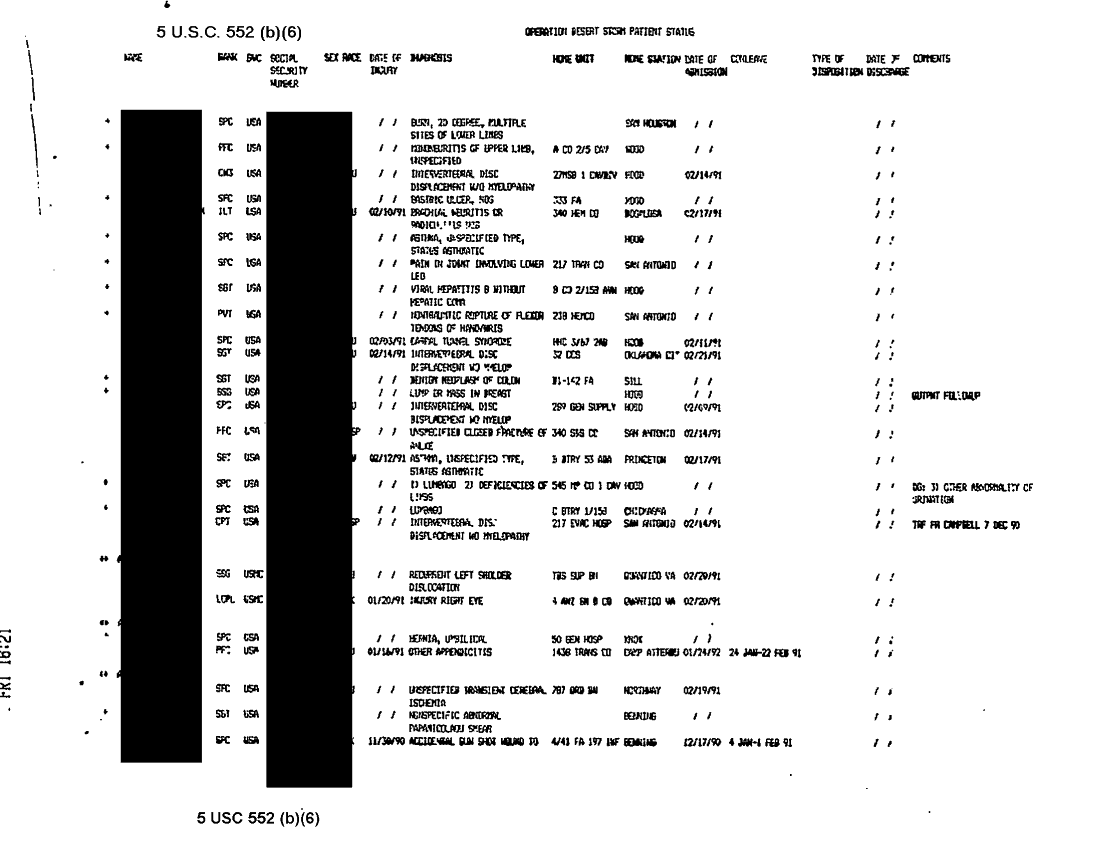 Document 38 f:/Week-31/BX000460/MEDSTAT-SITREPS - FEBRUARY - 2/ods patient status report 22feb91:09139616121511