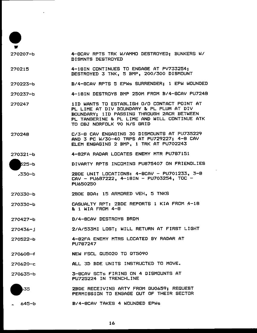Subject = CHRONOLOGY OF 3AD OPERATION DESERT SPEAR 24 28 F