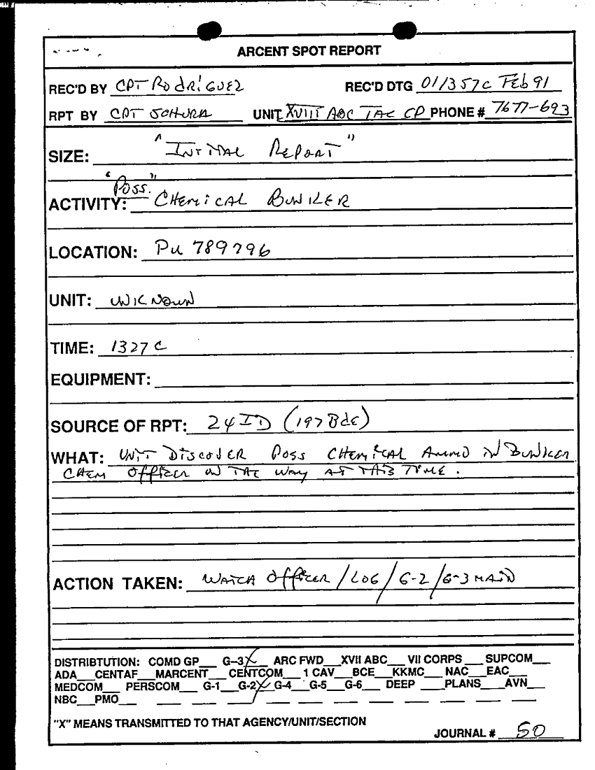 Document 1 f:/Week-29/BX000421/TACTICAL OPERATIONS CENTER LOGS - LUCKY TAC JOURNALS 1-7 MAR 91/arcent spot report:09139616132446