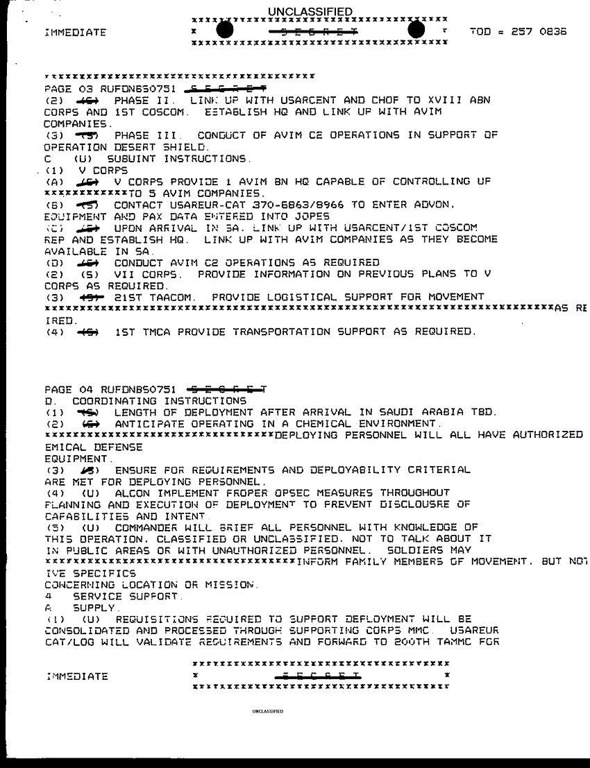 Document 6 f:/Week-28/BX000409/TACTICAL OPERATIONS CENTER LOGS - MSG FILE LOGS 15 SEP 90/ds opord no 15 deployment of avim bn hq 14 sep :09139616141465
