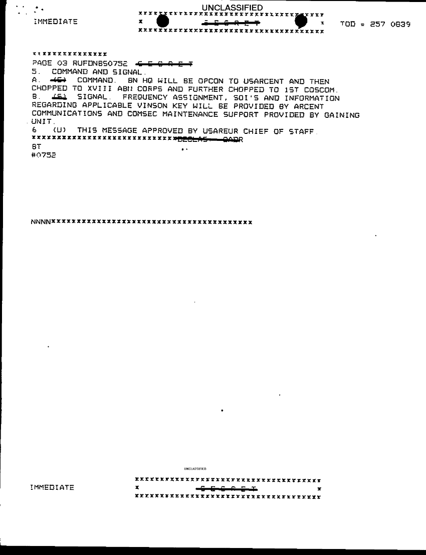 Document 6 f:/Week-28/BX000409/TACTICAL OPERATIONS CENTER LOGS - MSG FILE LOGS 15 SEP 90/ds opord no 15 deployment of avim bn hq 14 sep :09139616141465