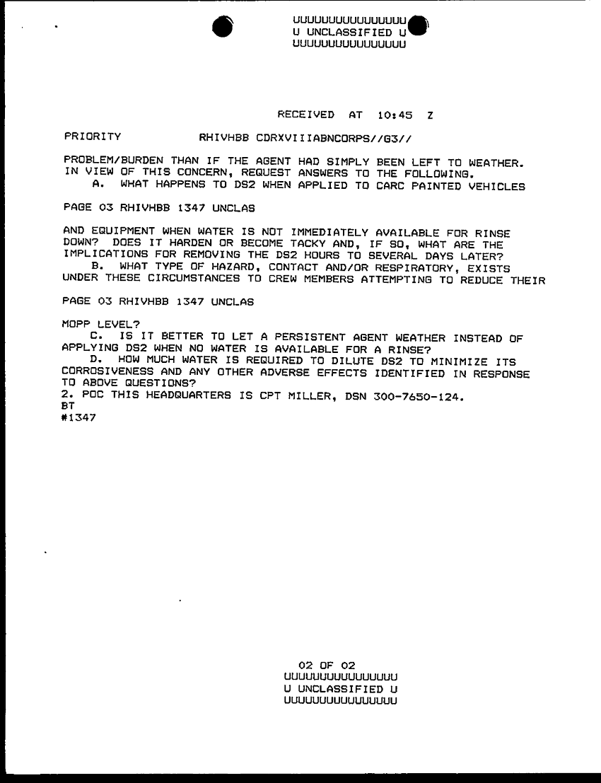 Document 4 f:/Week-30/BX000445/TOC LOGS-MSG FILE LOGS 25-26 NOVOV 90/use of decontaminating agent ds2:09139616122314