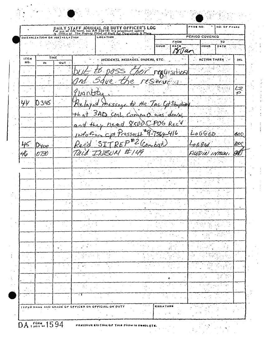 Folder Title = DAILY STAFF JOURNALS 19-27 JAN 91