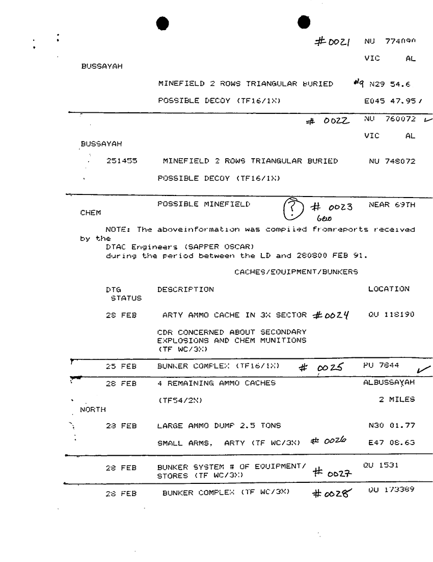 Document 17 f:/Week-25/BX000252/DAILY STAFF JOURNAL 2 MAR TO 15 MAR 1991 SITRREPS/7th engineer brigade demolition mission status:09139616131441