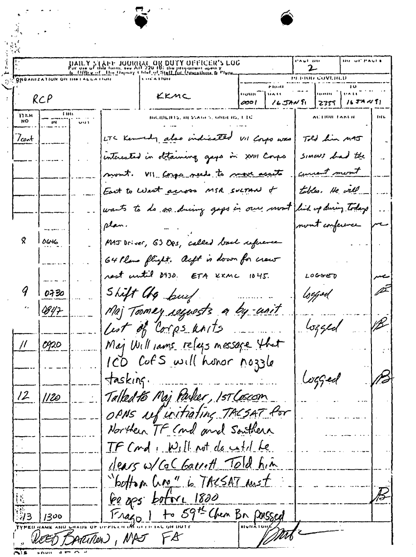 Document 3 f:/Week-10/BX000020/DUTY LOG G3 REAR CHIEF OF OPERATIONS DUTY LOG/daily staff journal or duty officers log 16 jan :09139616152193