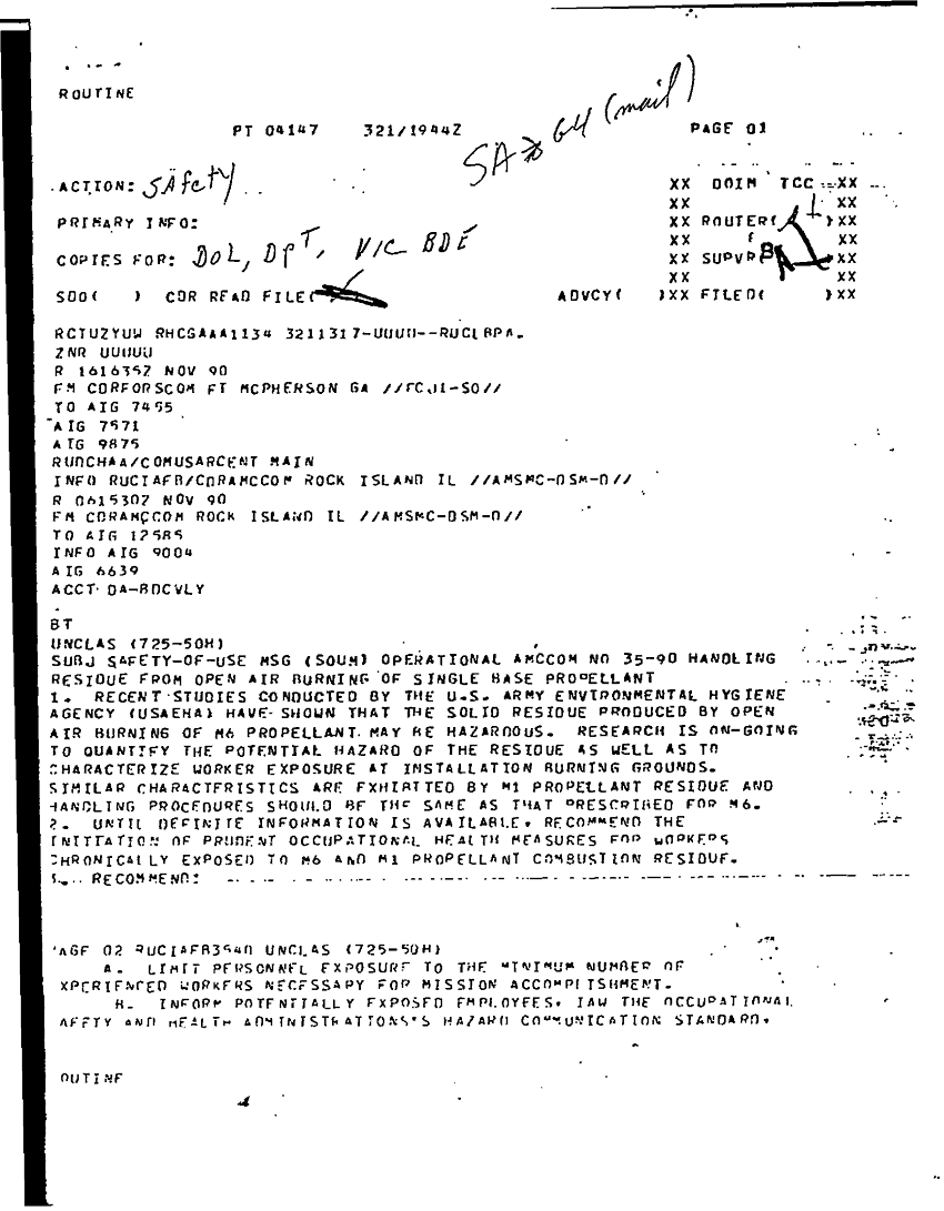 Subject = SAFETY OF USE MESSAGE BURNING OF SINGLE BASE PRO