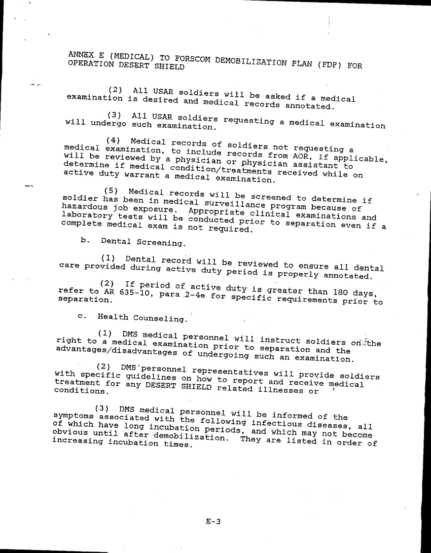 Document 5 f:/Week-31/BX000466/HISTORIANS BACKGROUND MATERIAL FILES-PERMANENT DESERT SHIELD-STORM-1/forscom demobilization plan annex e medical:09069614064432