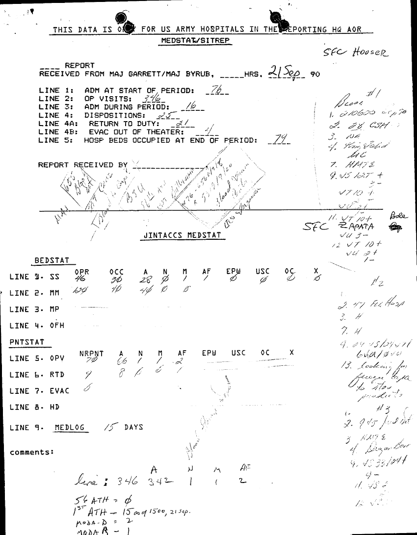 Document 7 f:/Week-32/BX000482/MEDSTAT - SITREPS AUG 90 1 OF 1/army hospitalizations outpatient visits:09069614064934