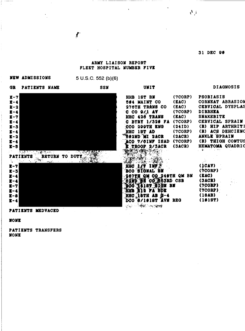 Document 29 f:/Week-32/BX000482/MEDSTAT - SITREPS DEC 90 4 OF 6/patient summary:0906961515135
