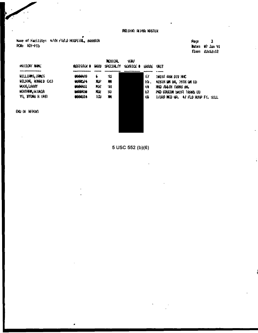 Document 8 f:/Week-31/BX000460/MEDSTAT- SITREPS - JANUARY - 1/patient alpha roster 7 jan 91:09069615152517