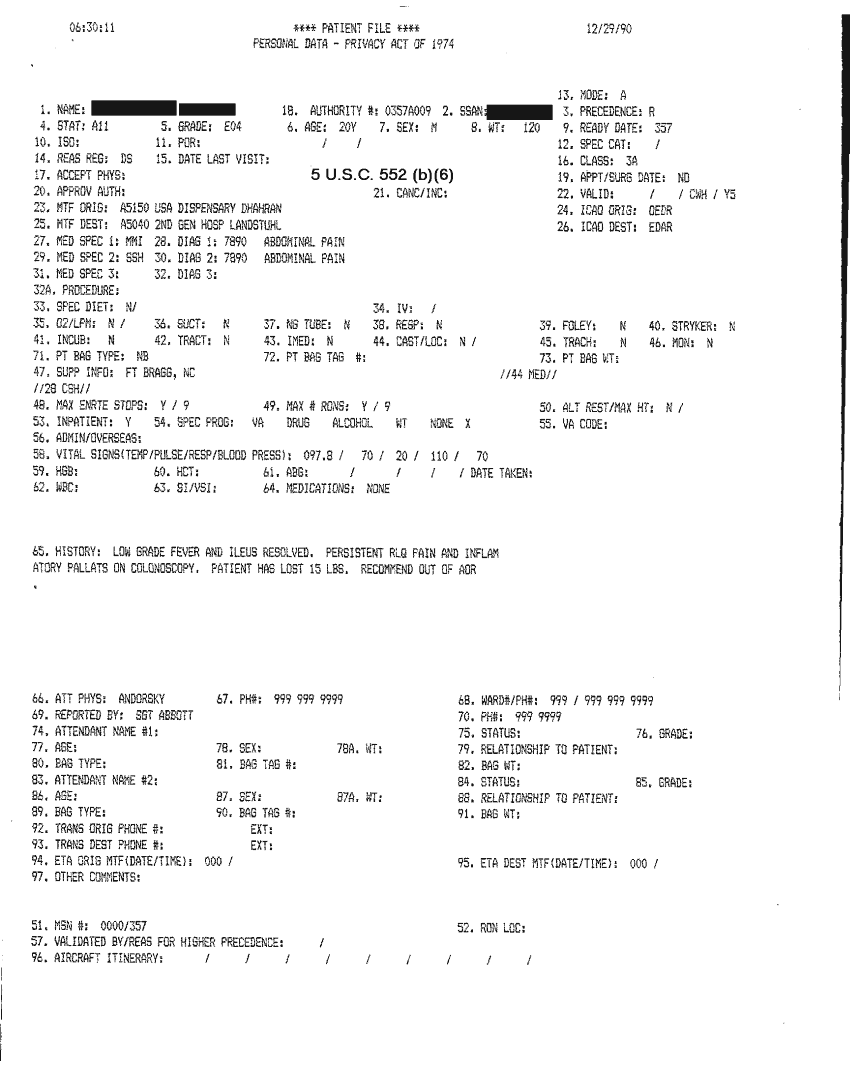 Document 18 f:/Week-32/BX000482/MEDSTAT - SITREPS DEC 90 4 OF 6/patient file:09069614061216