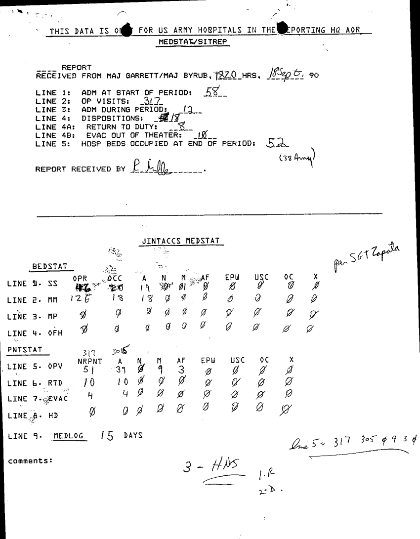 Document 6 f:/Week-32/BX000482/MEDSTAT - SITREPS AUG 90 1 OF 1/army hospitalization outpatient visits 18 sep :09069614061417