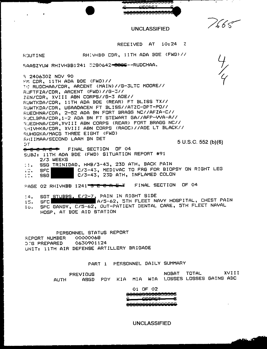 Document 11 f:/Week-30/BX000445/TOC LOGS-MSG FILE LOGS 25-26 NOVOV 90/11th ada bde fwd situation report:09069615152618