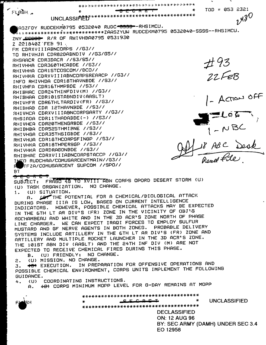 Document 2 f:/Week-29/BX000412/TACTICAL OPERATIONS CENTER LOGS - LUCKY TAC JOURNALS 22-23 FEB 91-1/frago 48 to xviii abn corps opord des strm:0906961405589