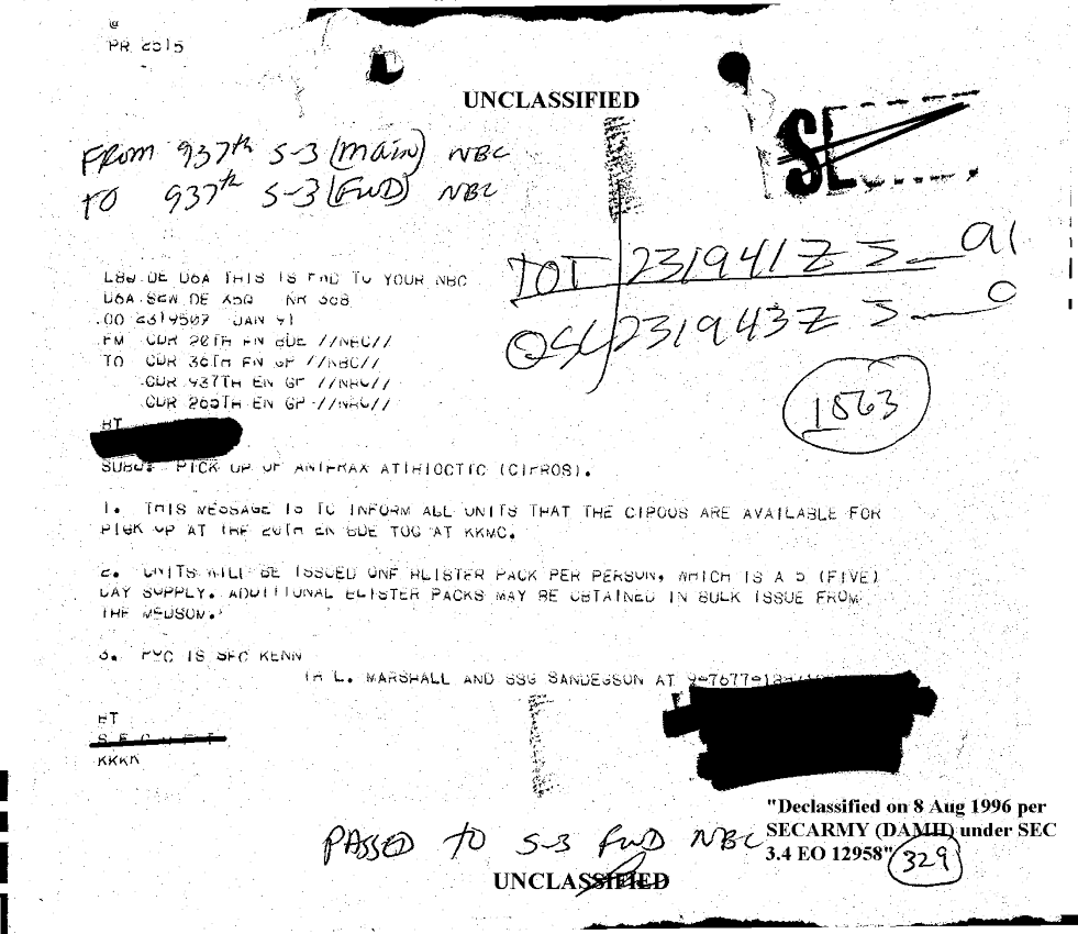 Document 1 f:/Week-26/BX001006/DUTY LOG 14-24 JAN 91-2/pick up of anthrax antibiotic:09069614060010