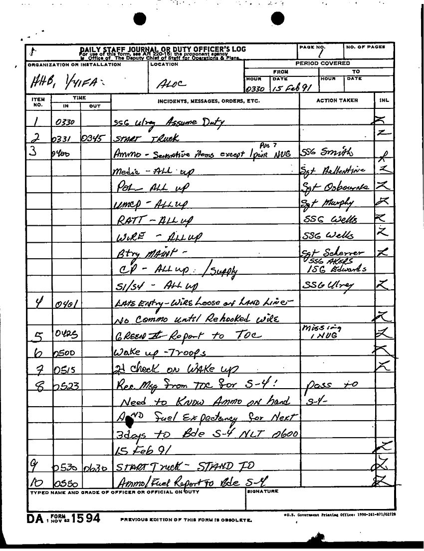Document 21 f:/Week-22/BX001431/DAILY STAFF JOURNALS - 24TH INF - JAN-FEB 91/daily staff journal hhb 1 41 a loc:09069614062522