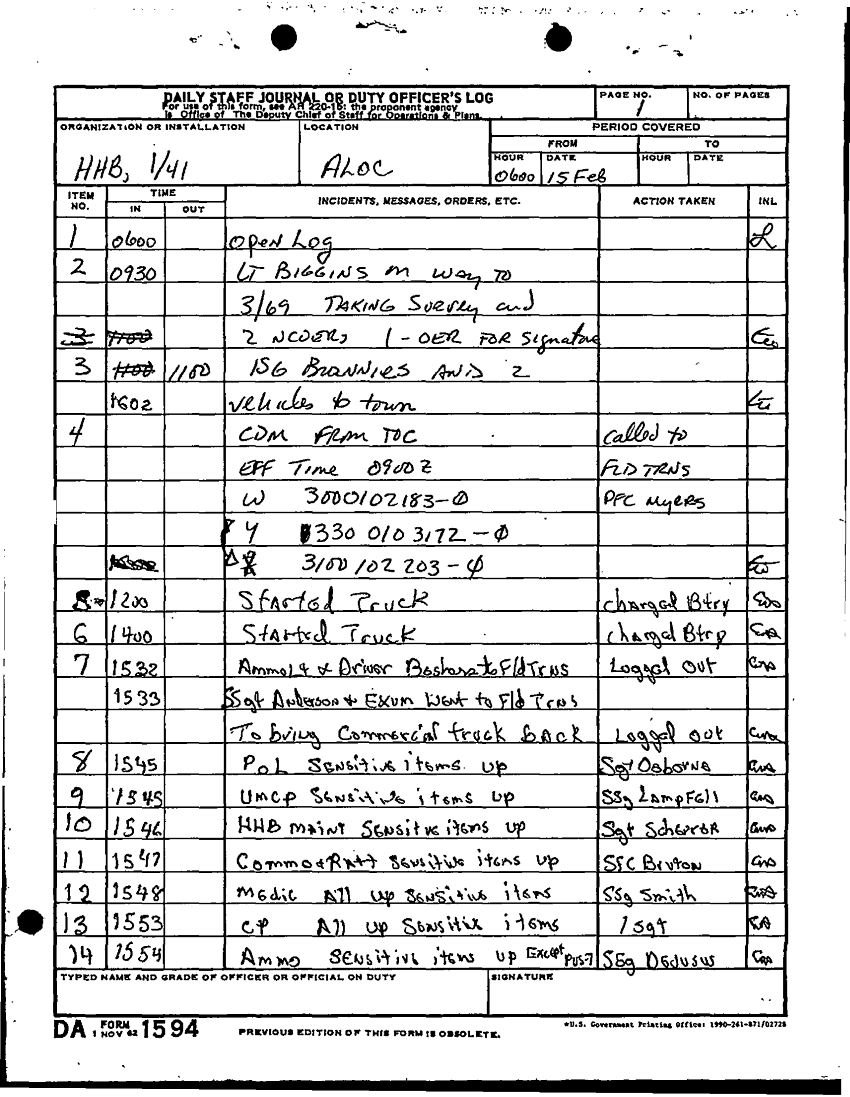 Document 21 f:/Week-22/BX001431/DAILY STAFF JOURNALS - 24TH INF - JAN-FEB 91/daily staff journal hhb 1 41 a loc:09069614062522