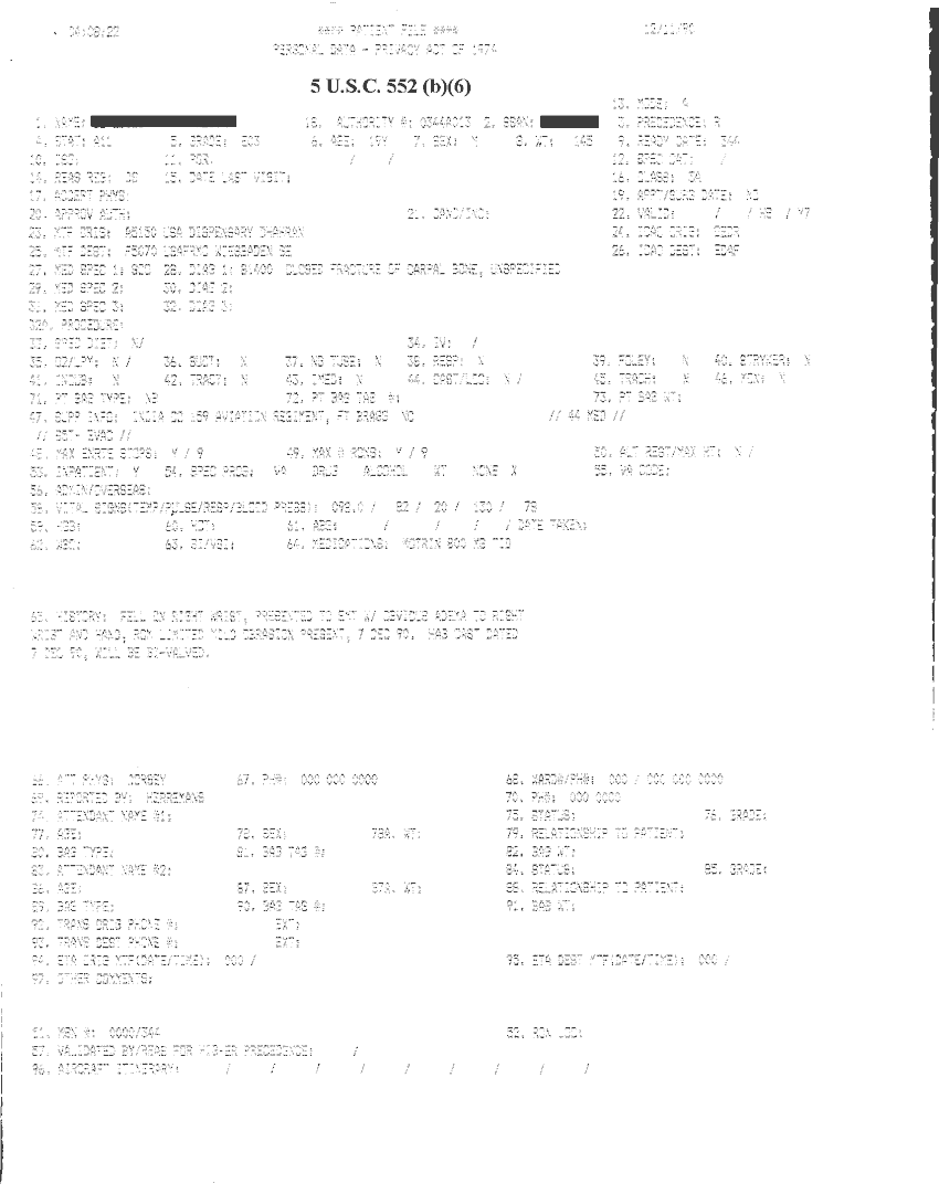 Document 14 f:/Week-32/BX000482/MEDSTAT - SITREPS DEC 90 1 OF 6/patient file personal data:09209615583457