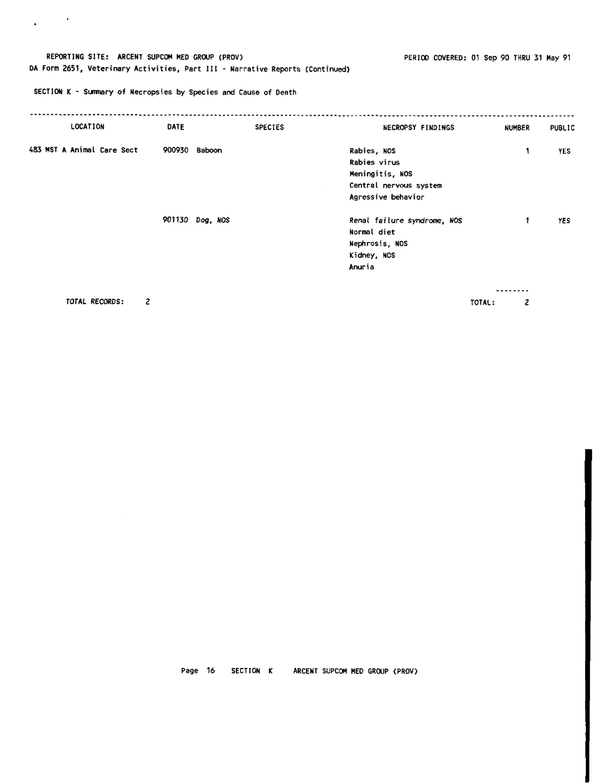 Subject = VETERINARY ACTIVITIES 1 31 MAY 91