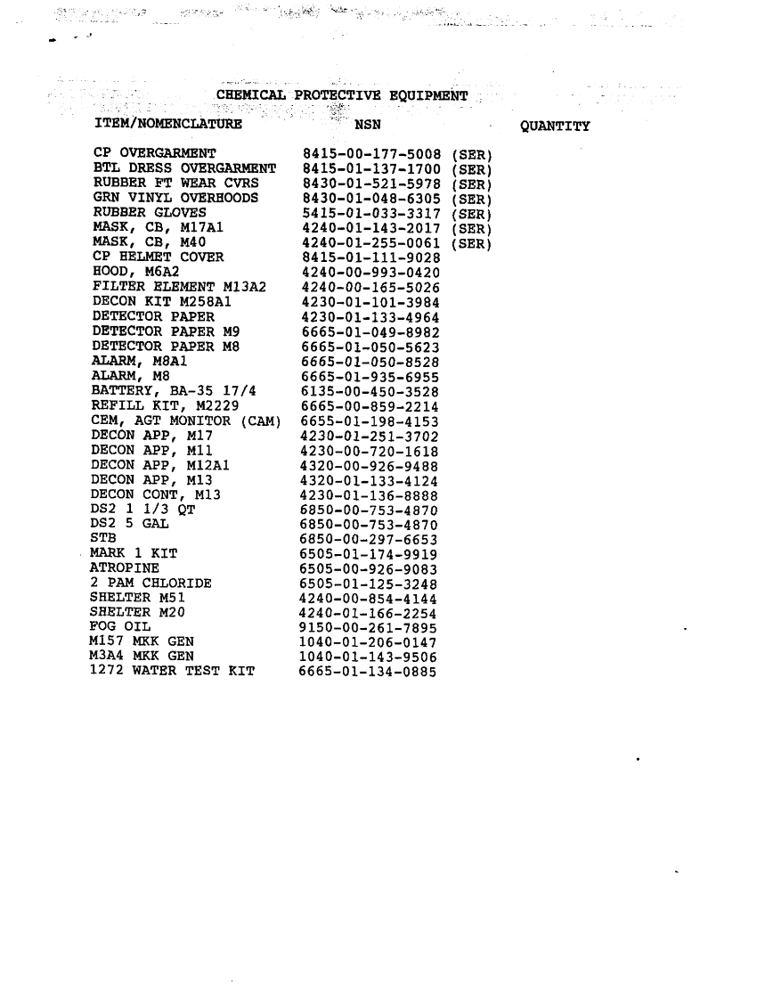 Document 3 f:/Week-34/BX005121/GENERAL NUCLEAR-CHEMICAL WEAPONS AND MATERIAL CORRESPONDENCE FILES -90/chemical equipment on hand report:09209615584372