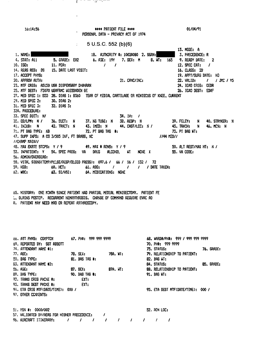 Document 31 f:/Week-31/BX000460/MEDSTAT- SITREPS - JANUARY - 1/personal data privacy act of 1974 4 jan 91:09209615580712
