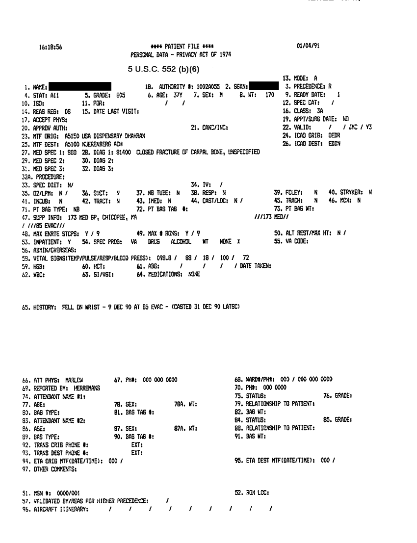 Document 31 f:/Week-31/BX000460/MEDSTAT- SITREPS - JANUARY - 1/personal data privacy act of 1974 4 jan 91:09209615580712