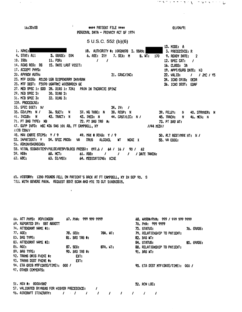Document 31 f:/Week-31/BX000460/MEDSTAT- SITREPS - JANUARY - 1/personal data privacy act of 1974 4 jan 91:09209615580712