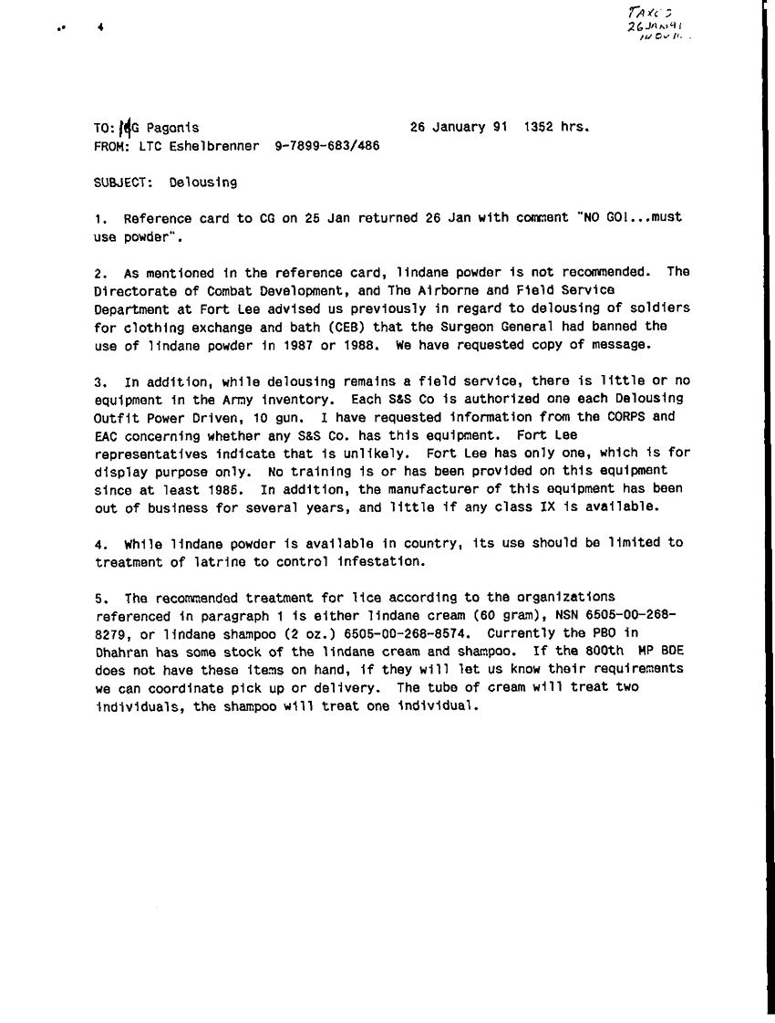 Document 1 f:/Week-34/BX005203/DELOUSING/delousing 26 jan 91:09209615585390