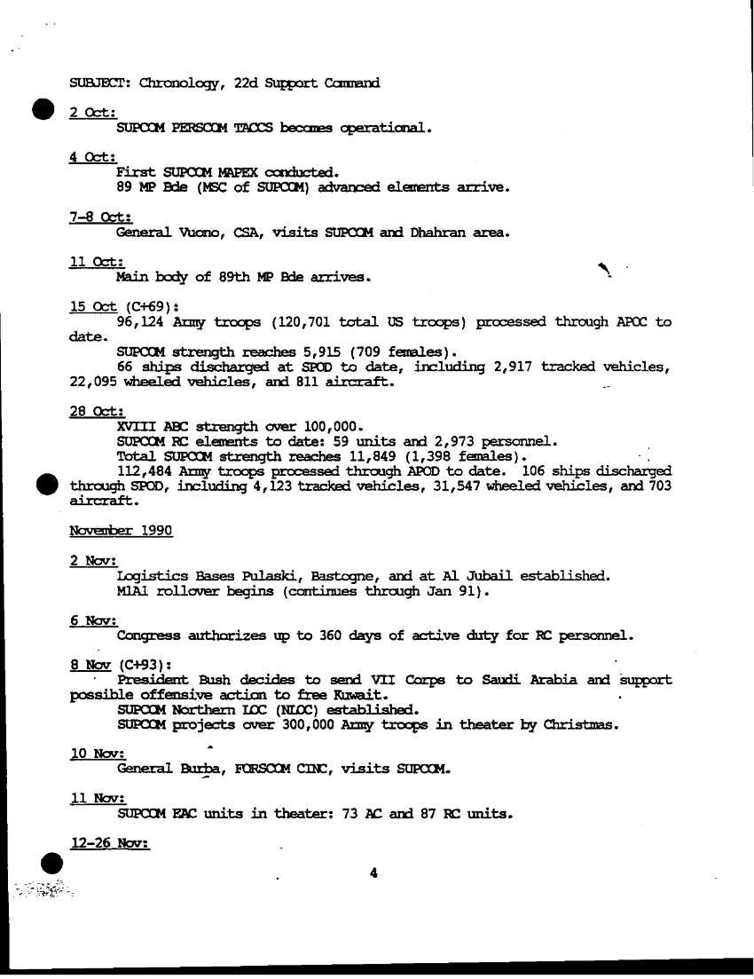 Subject = CHRONOLOGY 22D SPT CMD OPS DESERT SHIELD AND STO
