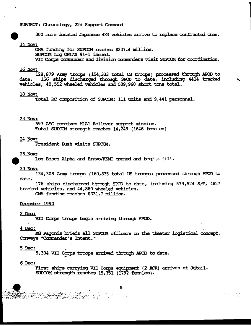 Subject = CHRONOLOGY 22D SPT CMD OPS DESERT SHIELD AND STO