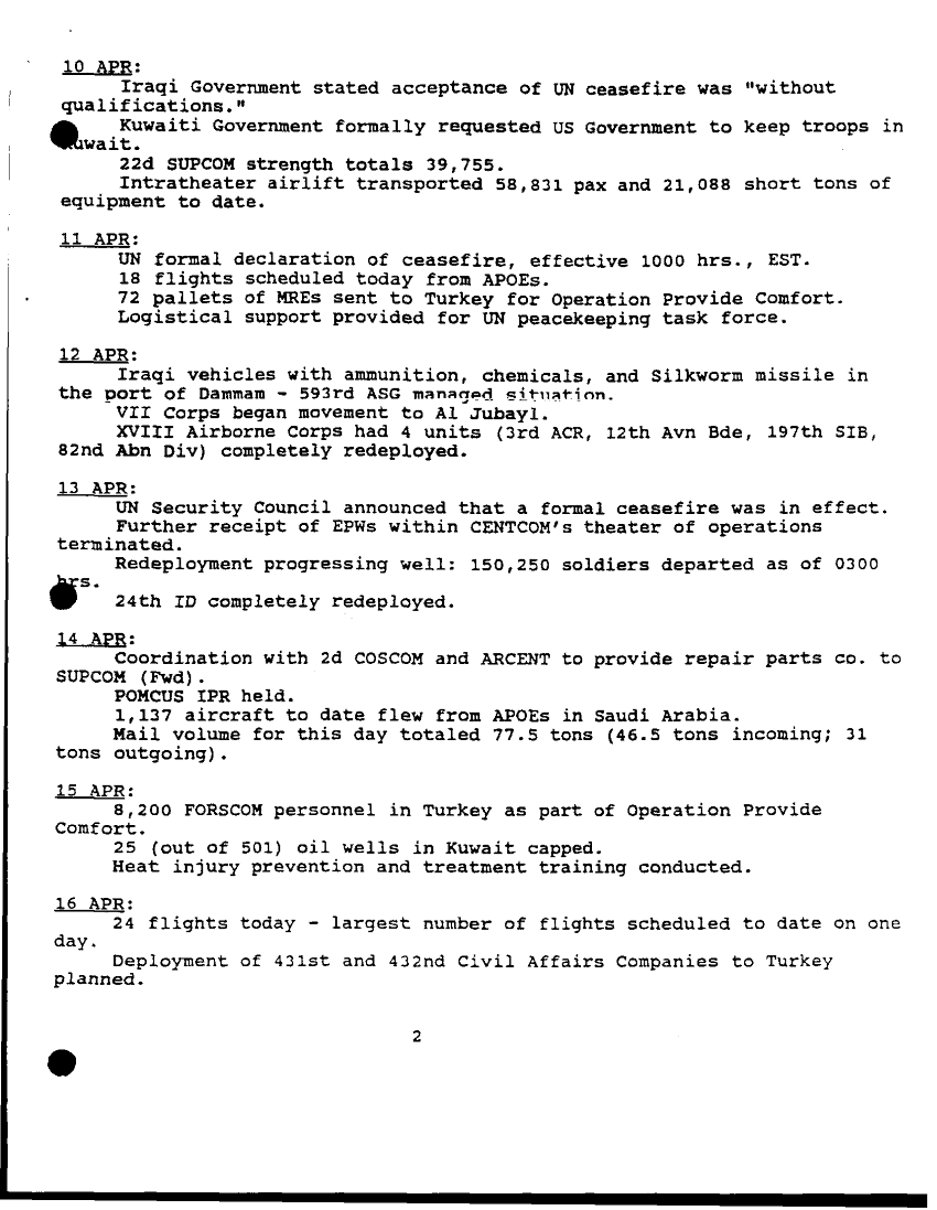 Document 15 f:/Week-33/BX005007/HQS ARCENT WRITTEN AAR 30 MAY 91/chronology 22d spt cmd ops desert shield and sto:09209615585492