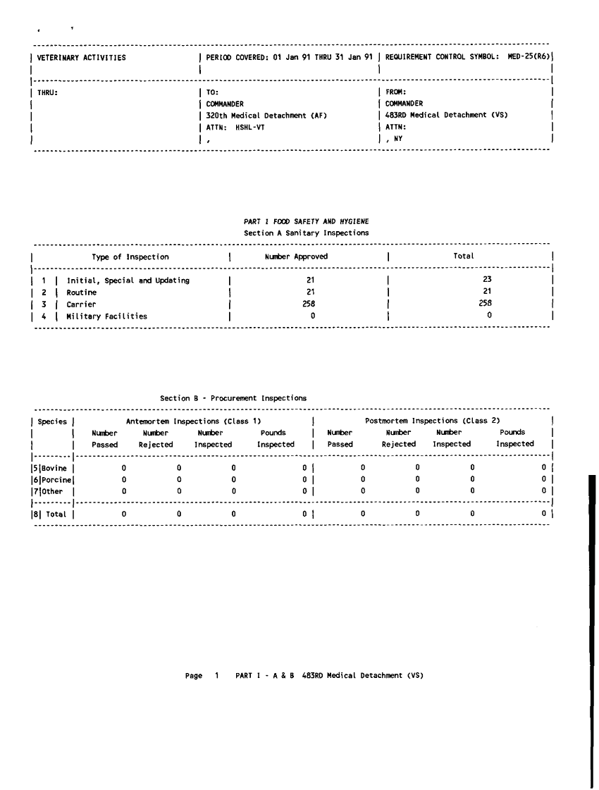 Subject = VETERINARY ACTIVITIES 1 31 JAN 91