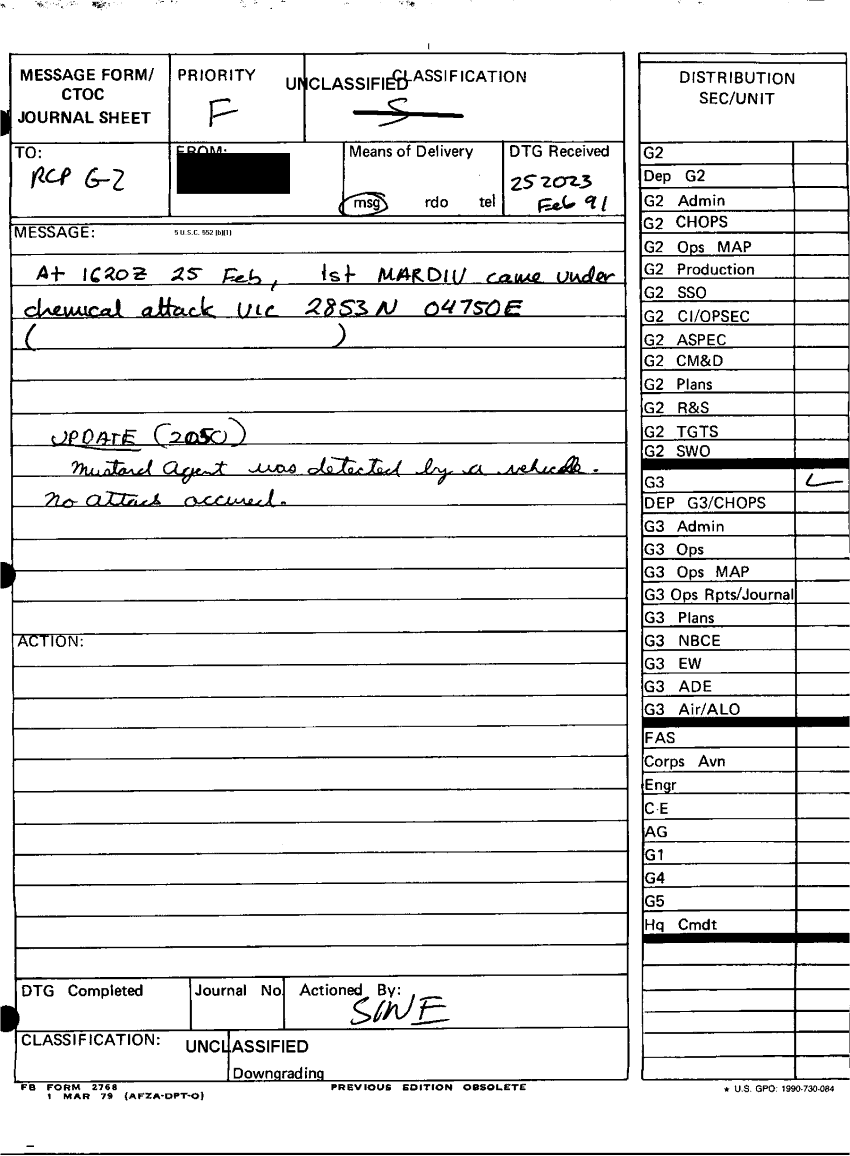 Folder Title = DUTY LOG G3 REAR 25 FEB 91