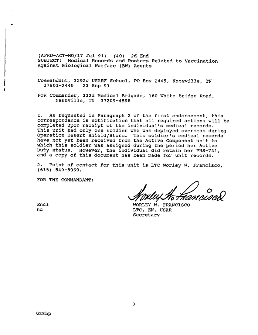 Subject = MED RECORDS AND ROSTERS RELATED TO VACCINATION A