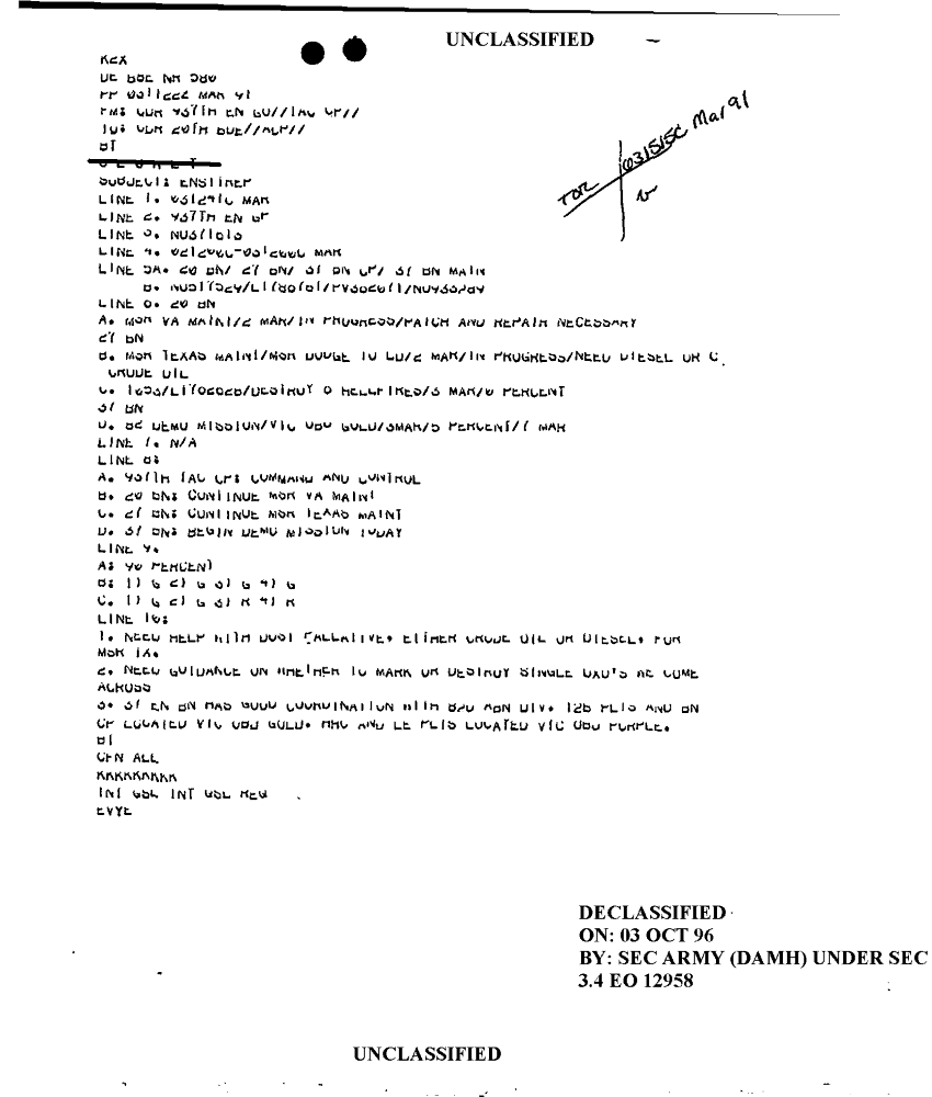 Document 1 f:/Week-18/BX000057/DUTY LOG MAIN CP MESSAGES 20 ENGINEER BDE 3 MAR 91/ensitrep:101196154256132