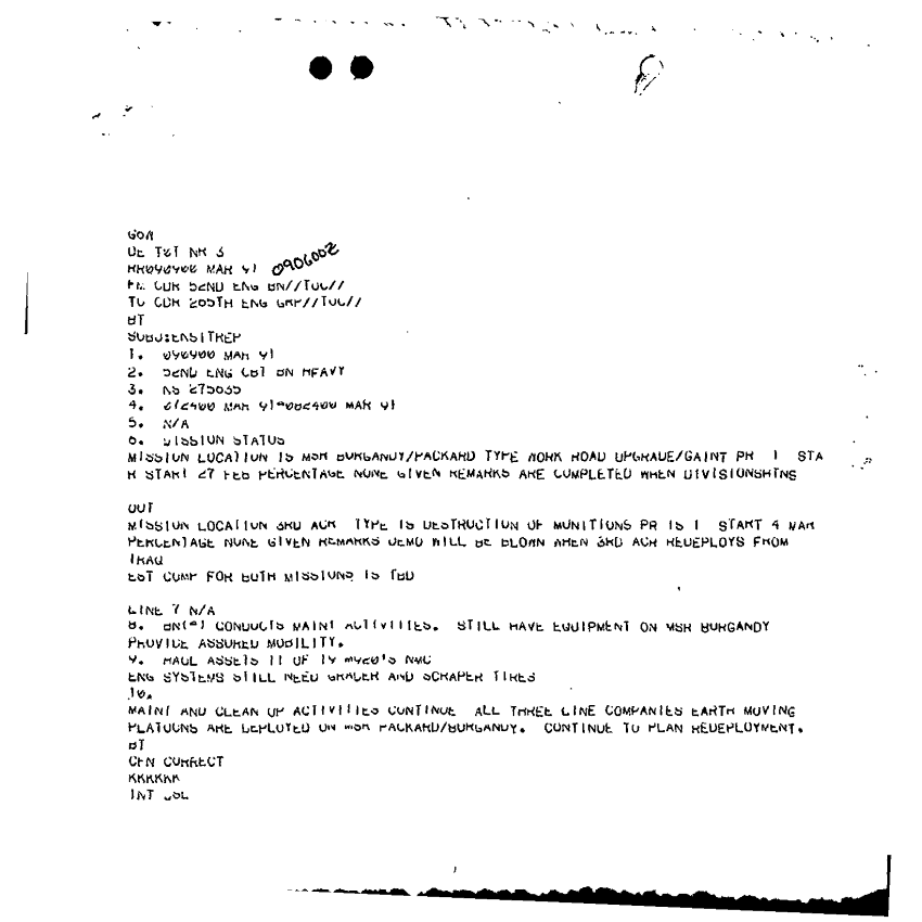 Document 1 f:/Week-18/BX000057/DUTY LOG MAIN CP MESSAGES 20 ENGINEER BDE 9 MAR 91/ensitrep 9 mar 91:10119615411040