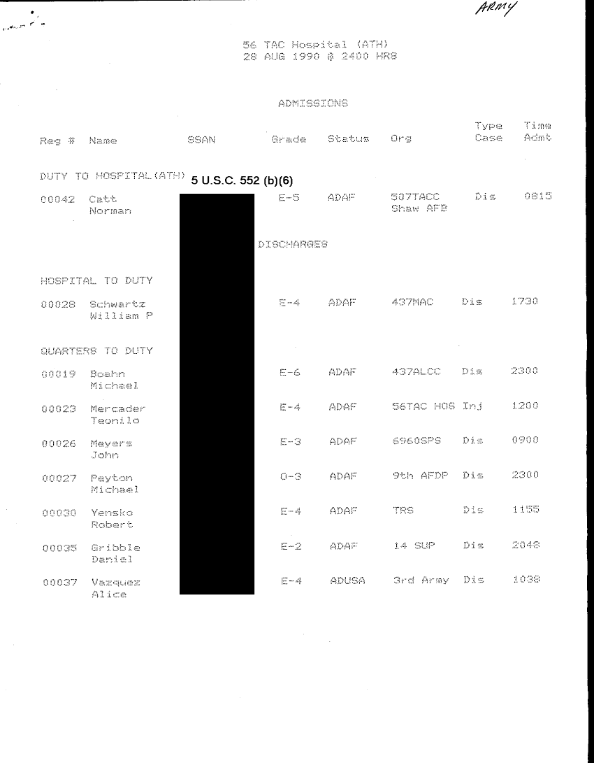 Document 7 f:/Week-32/BX000482/MEDSTAT - SITREPS AUG 90 1 OF 1/army hospitalizations outpatient visits:10119615402713