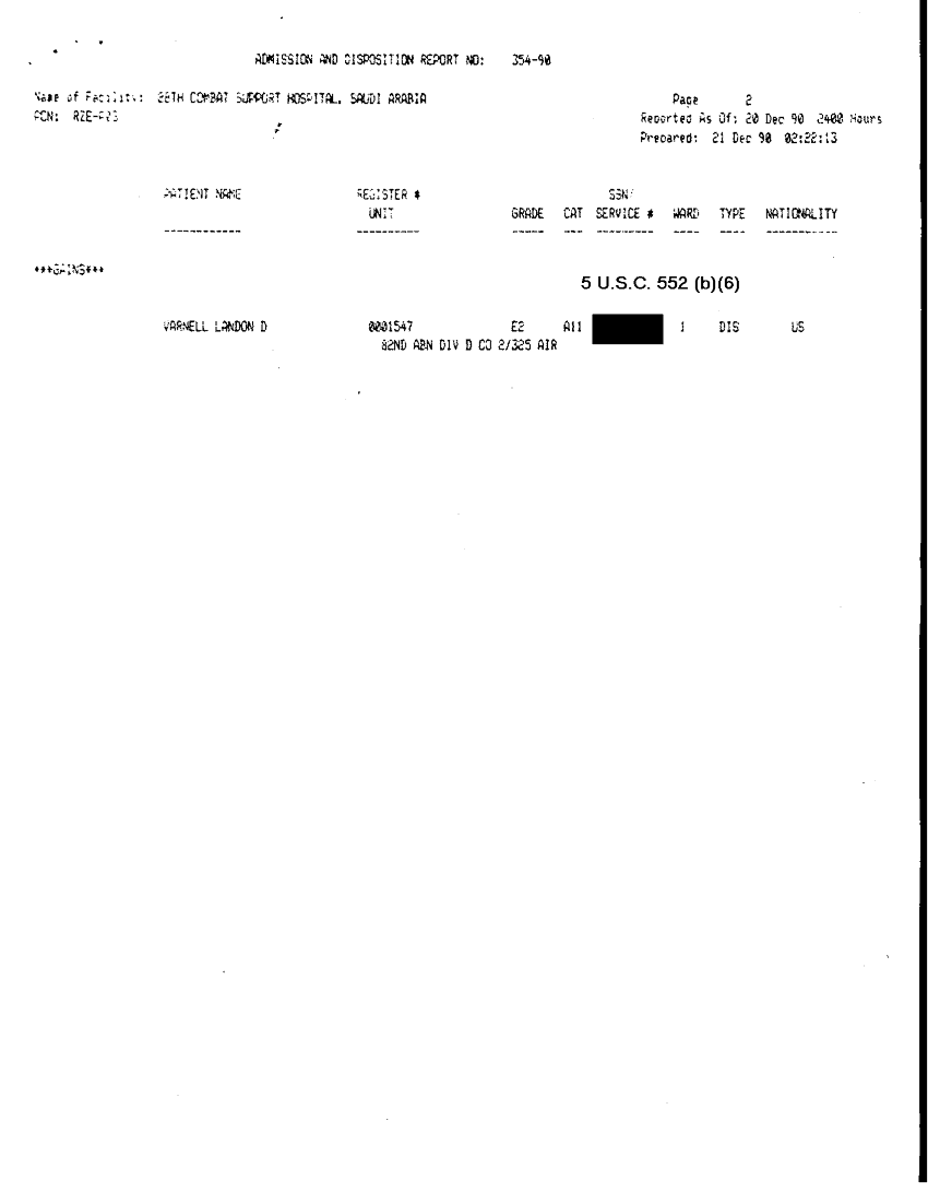 Document 26 f:/Week-32/BX000482/MEDSTAT - SITREPS DEC 90 2 OF 6/patient alpha roster 21 dec 90:10119615403418