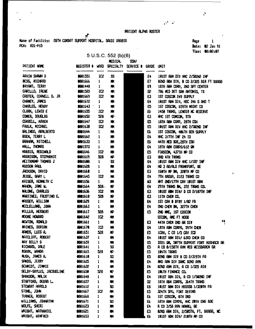 Document 46 f:/Week-31/BX000460/MEDSTAT- SITREPS - JANUARY - 1/patient alpha roster 2 jan 91:10119615403519