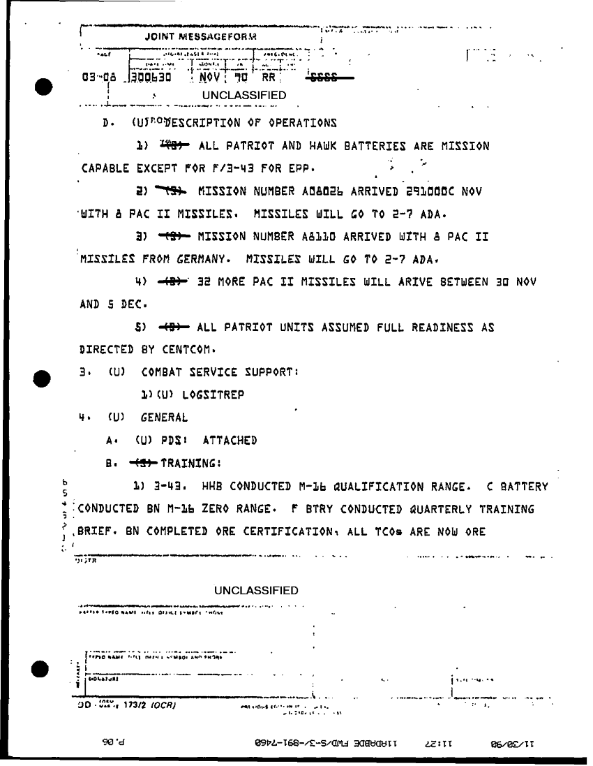 Document 8 f:/Week-32/BX000499/COMMAND REPORTS SITREPS 11TH ADA BDE 7 NOV - 7 DEC 90/11th ada bde situation report no 97 29 to 30 no:10119615413461
