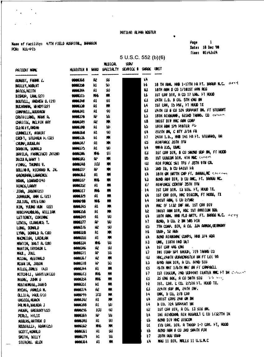 Document 32 f:/Week-32/BX000482/MEDSTAT - SITREPS DEC 90 2 OF 6/patient alpha roster 18 dec 90:10119615413664