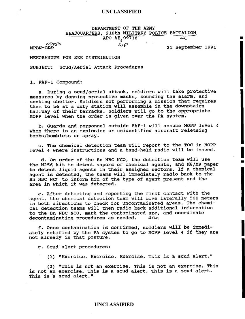 Document 5 f:/Week-33/BX002102/SUBJECT DESCRIPTION SHEET/scud aerial attack procedures hq 210 mp bn 21 s:10119615421996