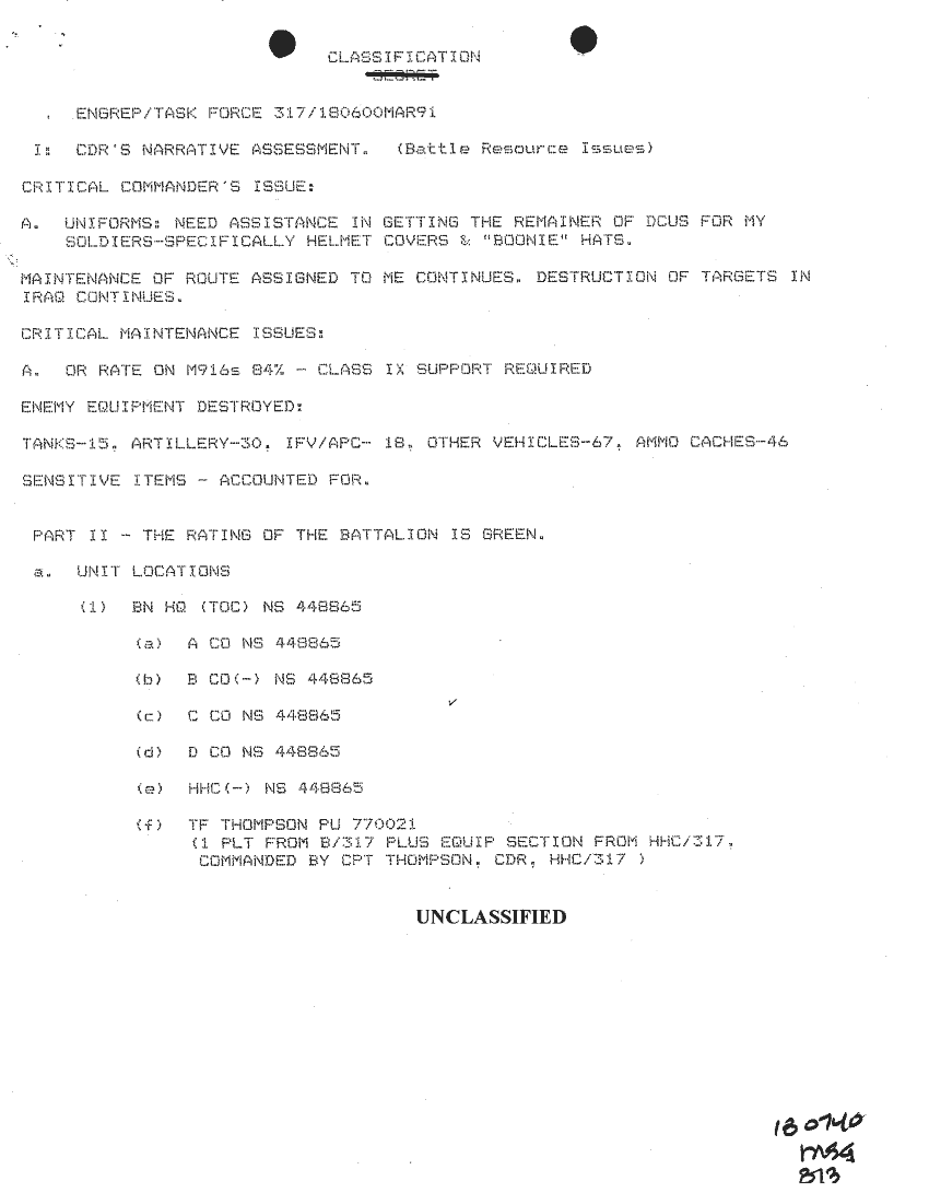 Subject = ENGREP TASK FORCE 317 18 MAR 91