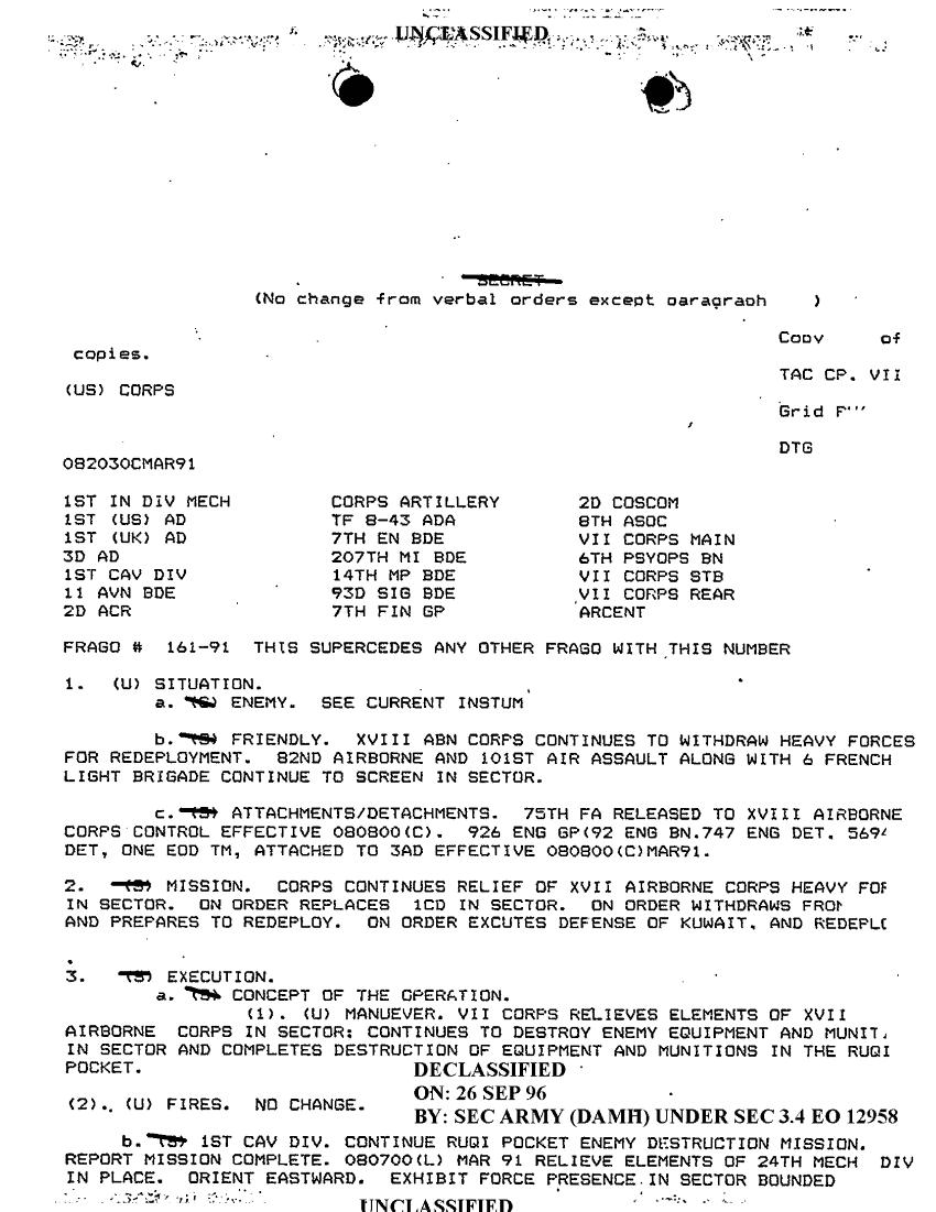 Subject = FRAGO 161 91