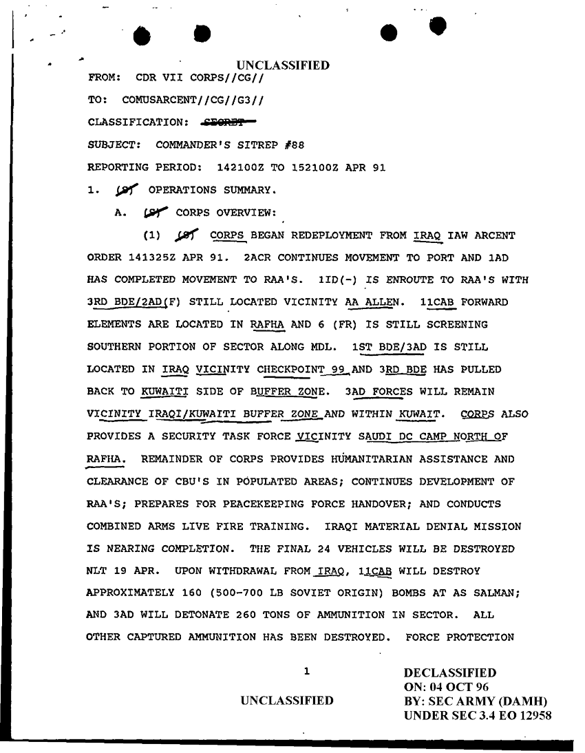 Document 11 f:/Week-24/BX000249/VII CORPS CMDRS SITREP 22 MAR THRU 6 MAY 91/commanders sitrep 88:10189613572335