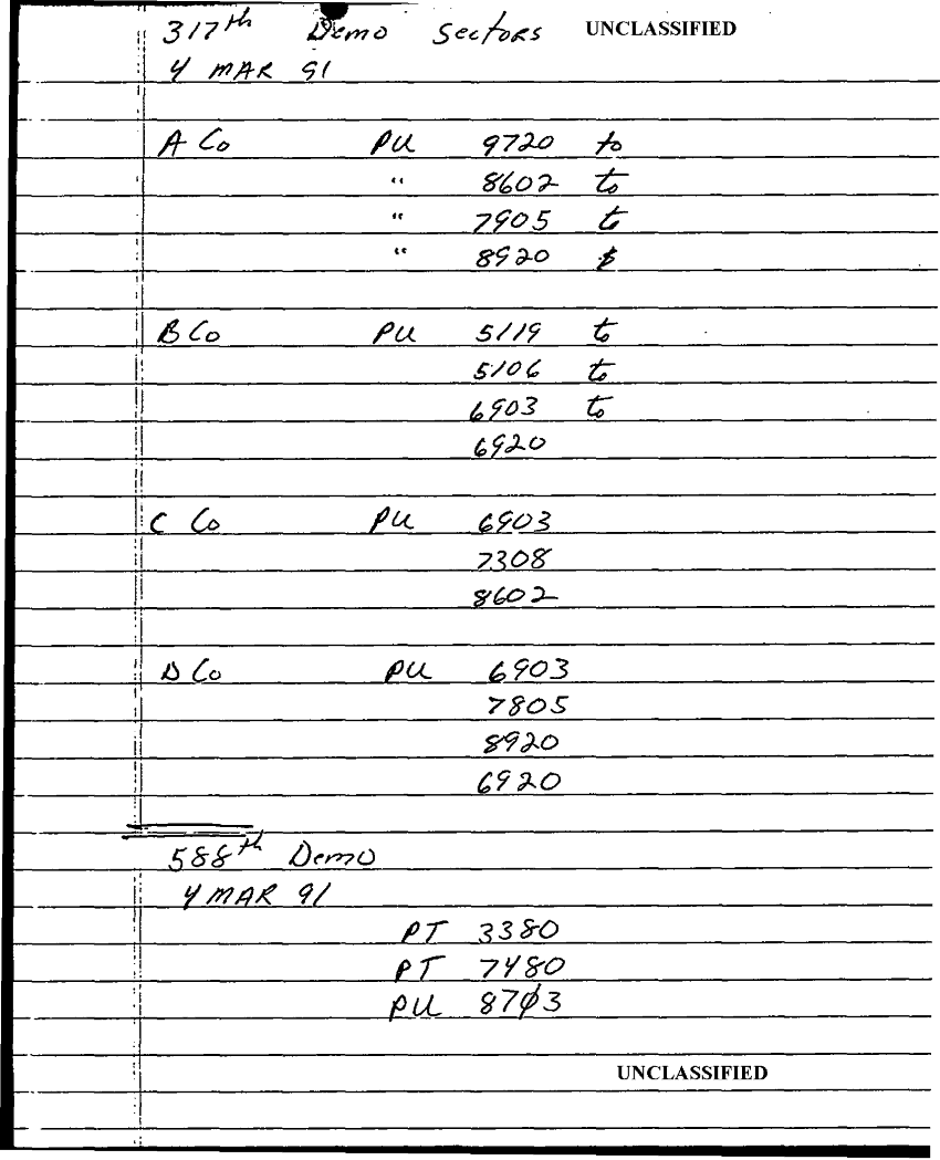 Document 2 f:/Week-24/BX000211/TASK FORCE DEMO LOG 2-14 MAR 91/demo sectors:10189613573949